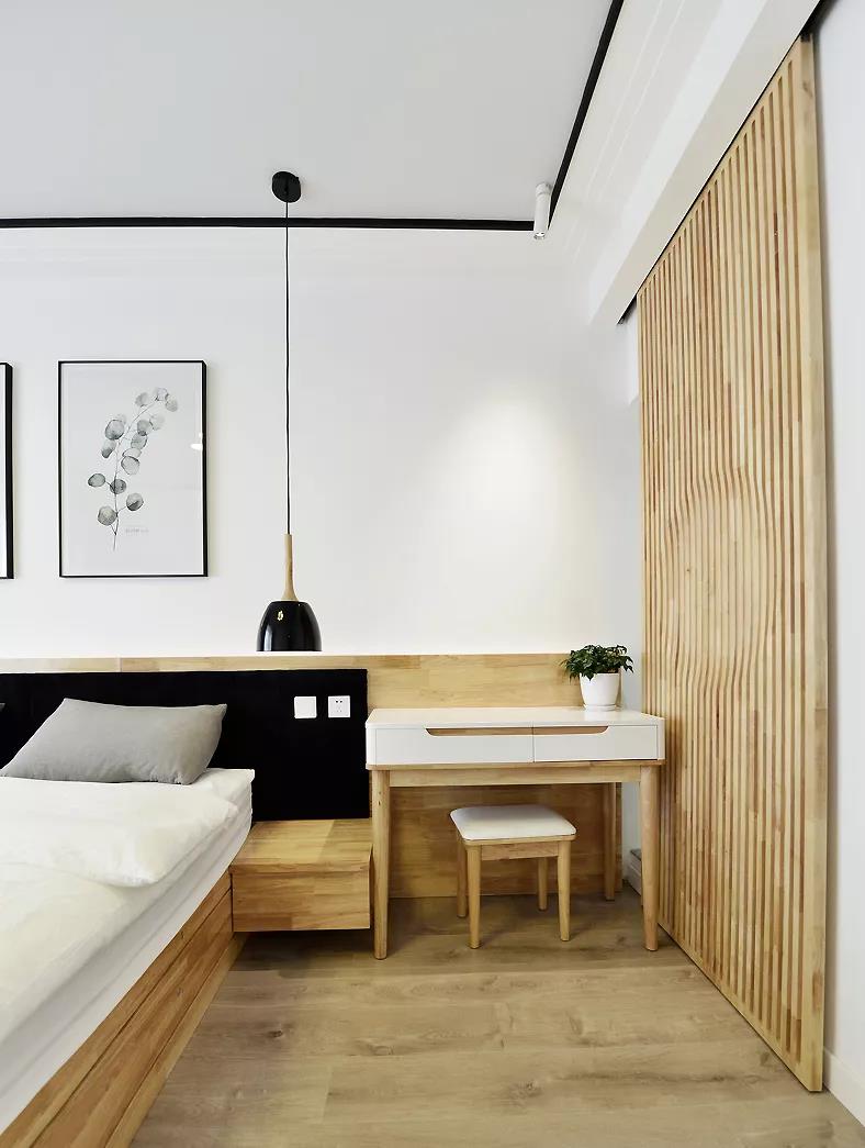 ▲ 床头一侧设置了梳妆台,满足收纳需求与美观要求。
