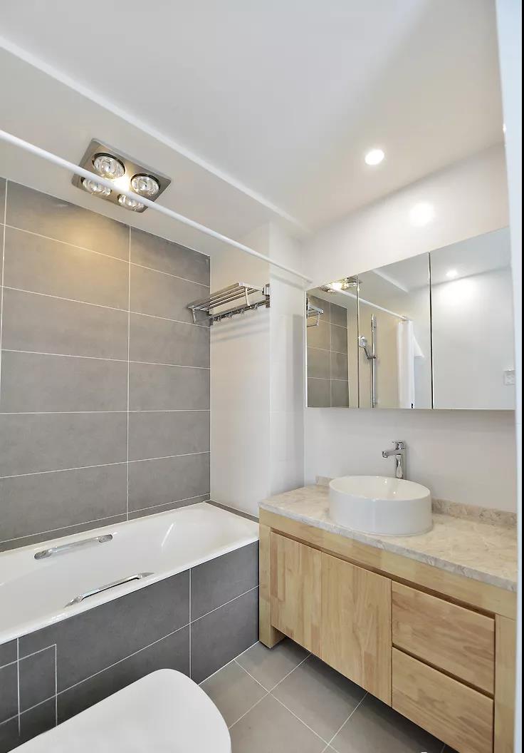 ▲ 卫生间以简约的灰白两色为主调,整体简洁雅致。