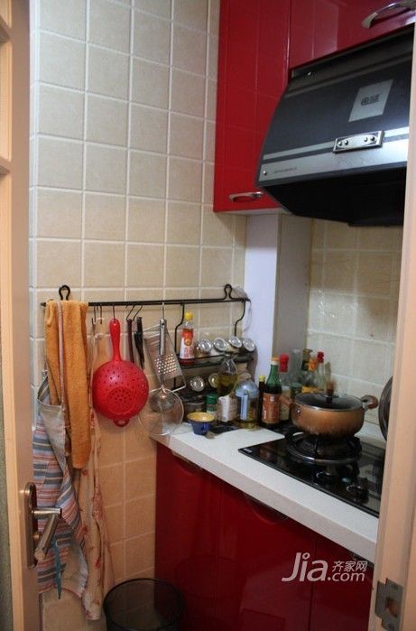 厨房很小,我就拍了门口的灶台一张,这厨房和大多数小户型的厨房不一样,既不是半开式也不是全开式,而就是封闭式!