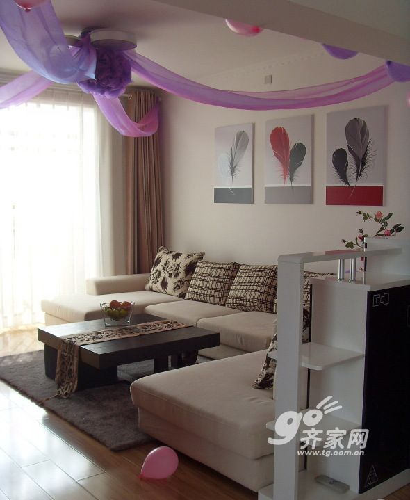 2、电视下面放机顶盒的是茶几配套的小沙发凳子,暂时充当电视柜了,等攒够了银子再补上~(茶几+两个沙发凳1300元)