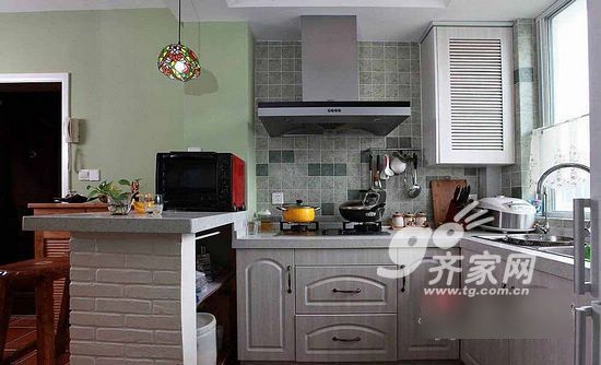 厨房和卫生间之间原本有一堵墙,我不喜欢洁具和台盆挨在一起,总觉得很不干净,所以坚持要干湿分离开。看看现在的砖砌台盆柜,晶莹透亮的绿色马赛克,第一眼看到时觉得很普通,不过越看越喜欢!