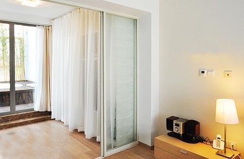 隔断的玻璃,隐约有欧式的花纹,典雅内敛之美。