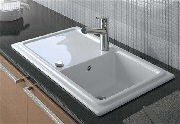 陶瓷水槽比较常见,具有耐高温、耐老化、易清洗等特点,但要避免和硬物碰撞和划伤,清洁时可以用抹布,如果是顽固污渍可以用金属丝,但一定要轻轻擦拭。