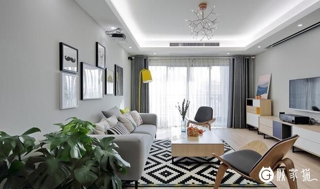 客厅工程主要吊顶:木龙骨,9.5mm石膏板,电视墙造型大项。总预算在11736元。