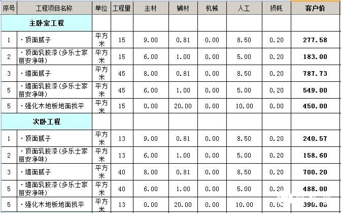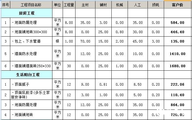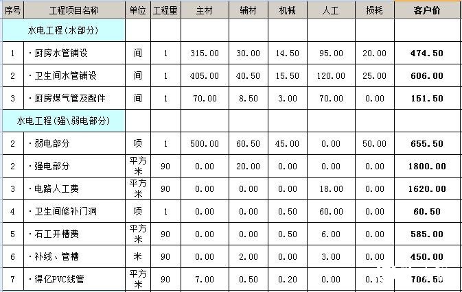 二、90平全包装修预算表——主材预算