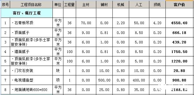 1.客厅、餐厅装修预算