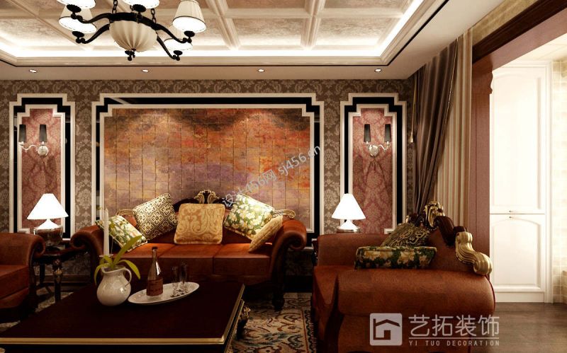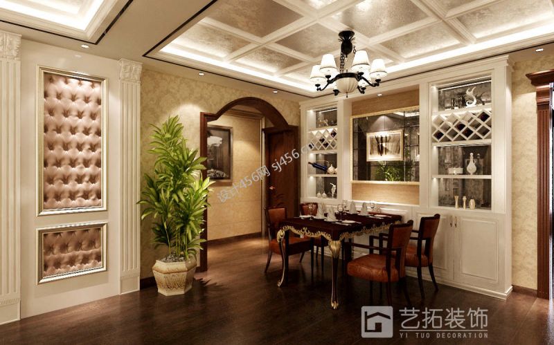 保定艺拓装饰公司 源盛嘉禾140平米三居室美式风格装修效果图