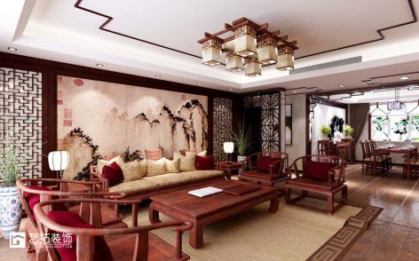 水榭花城140平米三居室中式风格装修效果图风效果图