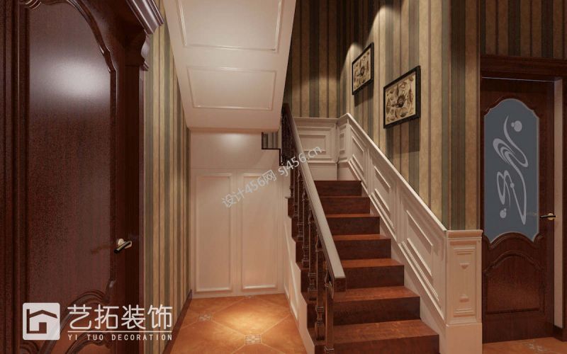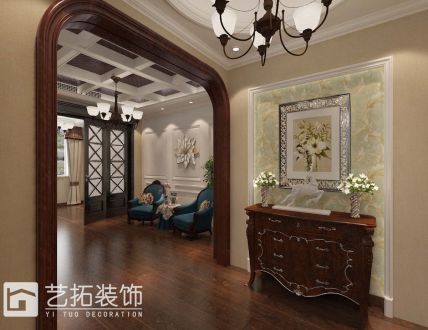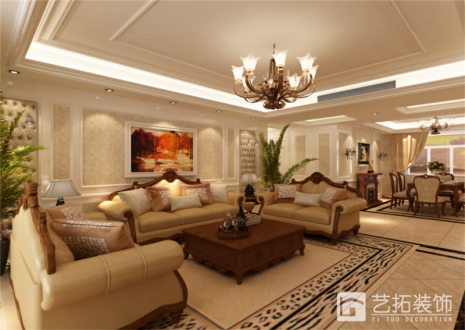 保定艺拓装饰公司 公园一号300平米别墅美式风格装修效果图