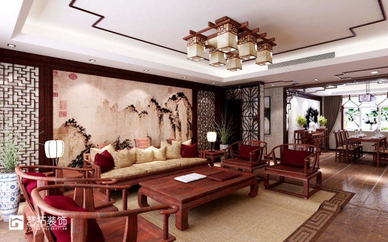 水榭花城140平米三居室中式风格装修效果图