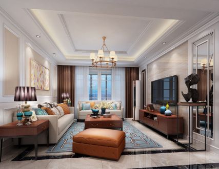 东岭新时代140平米三居室简约风格装修设计案例风效果图