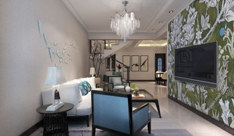 华夏盛世佳苑132平米三居室新中式风格装修设计案例风效果图