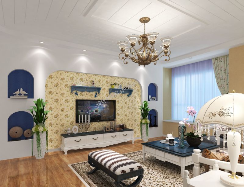 地中海客厅电视墙壁纸装修效果图欣赏