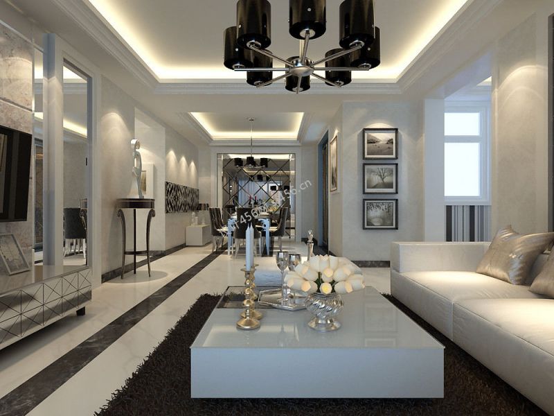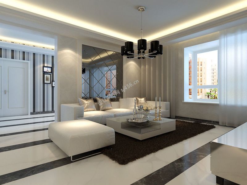 新房简洁现代风格客厅整体装修效果图