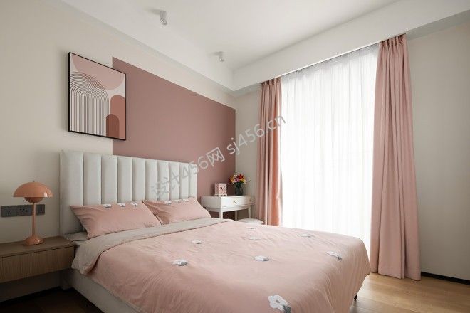 现代复古风格122平米三居室卧室窗帘效果图