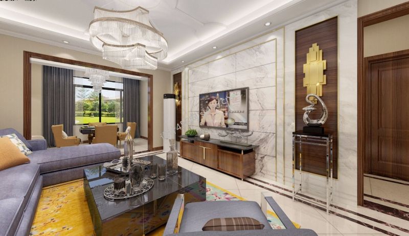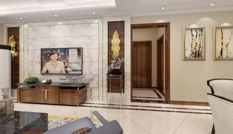 三室两厅现代简约客厅瓷砖电视背景墙装修效果图