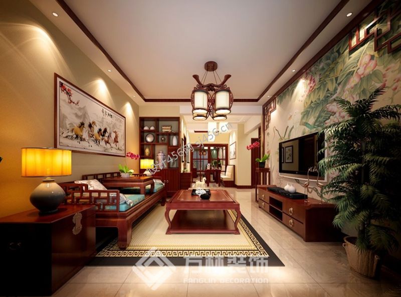 本溪方林装饰 绿地中央广场85平中式风格装修