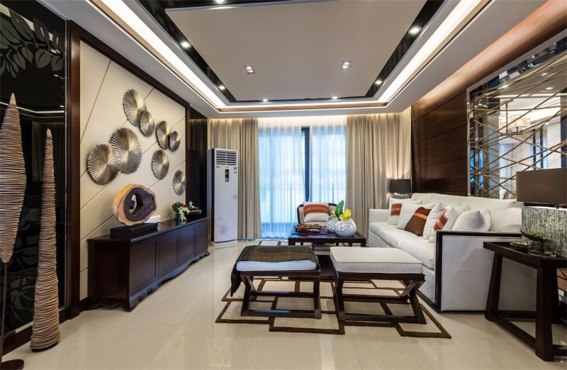 阳光城中央首府新中式风格100平米三室两厅装修案例