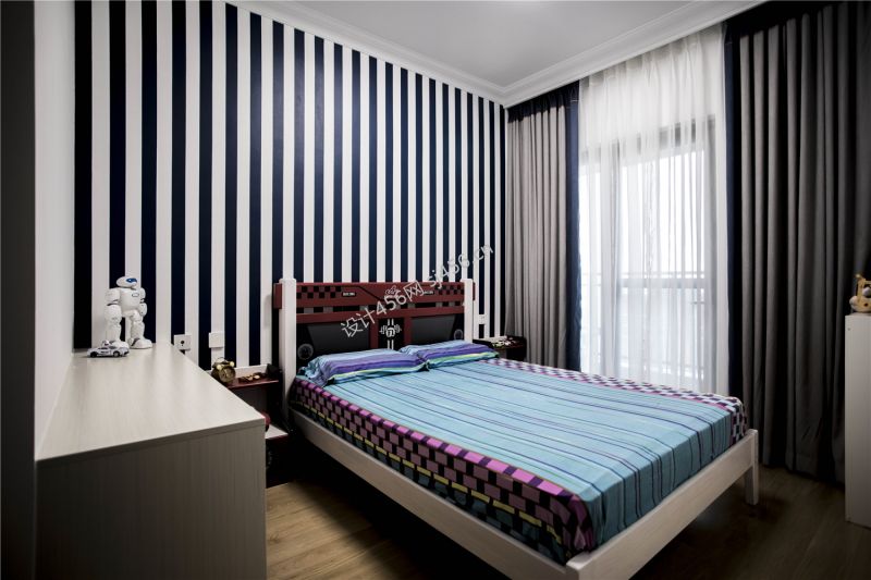 轻奢风格147平米四室两厅卧室窗帘装修效果图