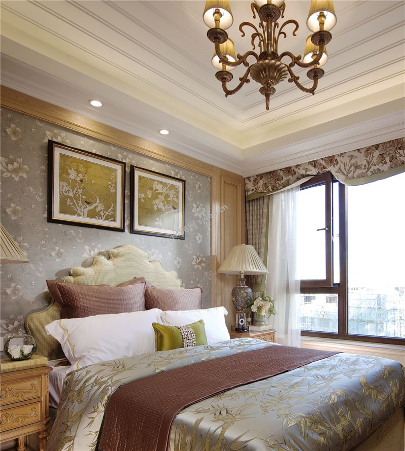 田园风格143平米四室两厅卧室床头装修效果图