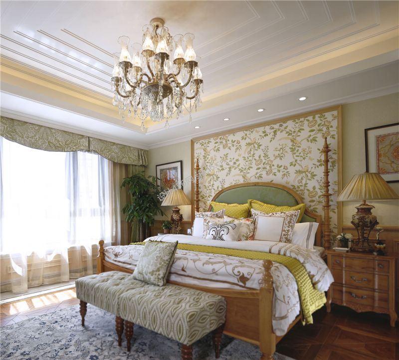 田园风格143平米四室两厅卧室吊灯装修效果图
