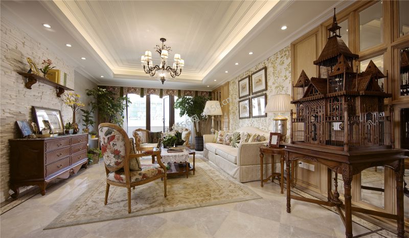 樽憬财富广场美式风格124平米三室两厅装修案例风效果图
