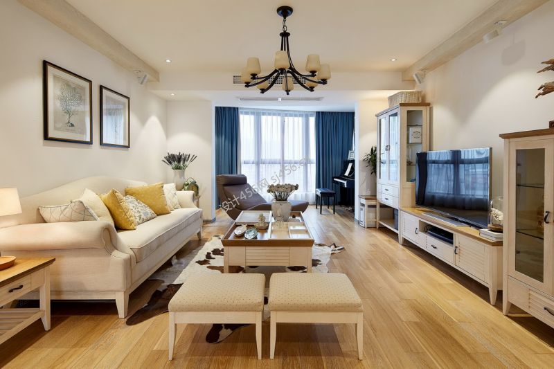 樽憬财富广场美式风格124平米三室两厅装修案例风效果图