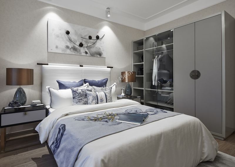 新中式风格115平米三室两厅卧室装修效果图