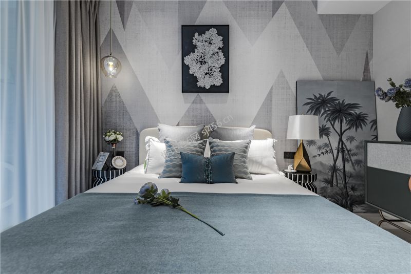 轻奢风格143平米三室两厅卧室床头装修效果图
