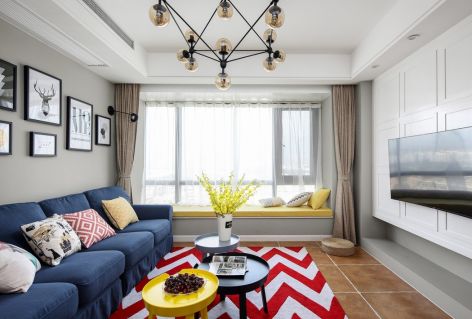 西罗园一区混搭风格80平米三居室装修案例风效果图