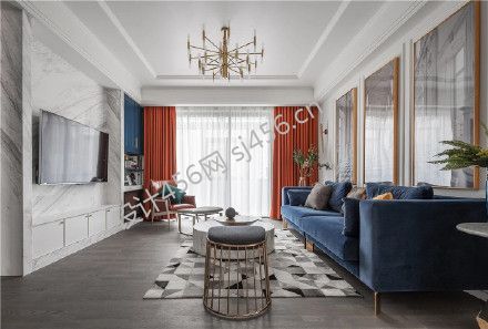 富卓花园轻奢风格125平米三居室装修案例风效果图