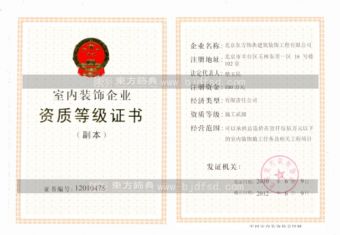 北京东方饰典建筑装饰工程公司在大、中型工装和集成豪华别墅装饰方面拥有雄厚的实力和高度专业化的水准。 公司具有高中级专业技术职称的设计人员,管理人员,拥有一批高素质的现场施工和管理技术骨干,装备精良,工艺精湛,作风过硬的施工队伍,能胜任不同档次,不同规模,不同类型的、写字楼、宾馆、酒店、商铺,高档别墅等装饰工程的专业施工承包及设计。【东方饰典】视品牌声誉如生命,珍惜每一次为客户服务的机会,追求高品位、高质量、高效率,在北京装饰业界和北京装修客户群中享有良好的口碑。