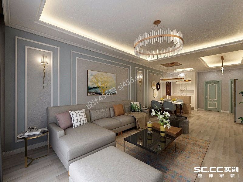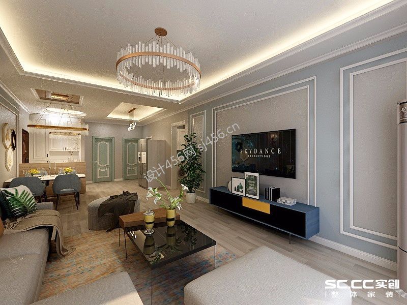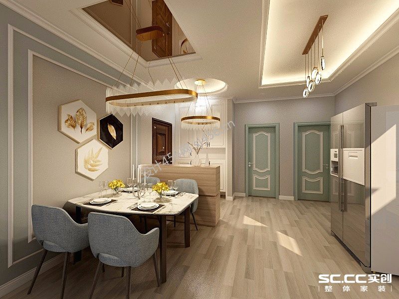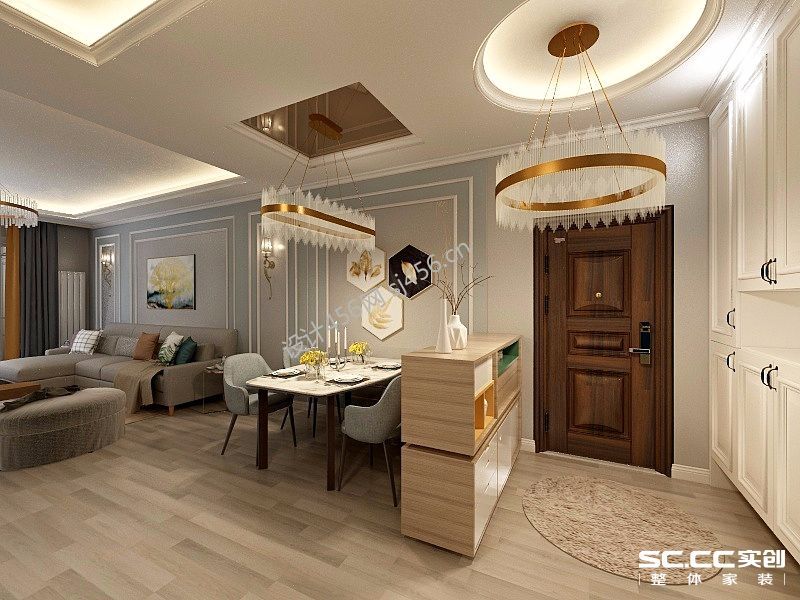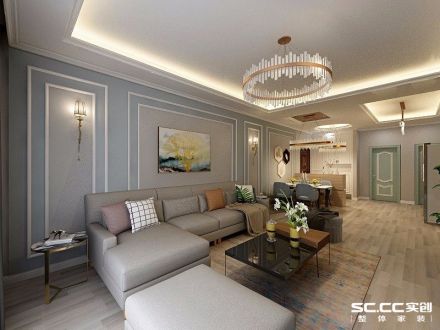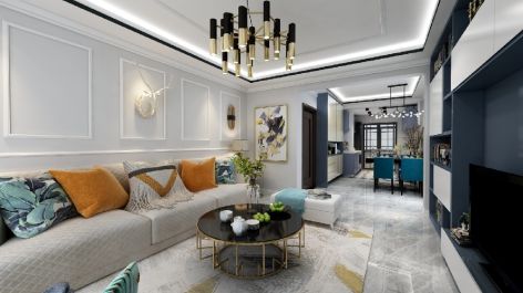 威尔夏大道现代奢华三居120㎡装修案例风效果图