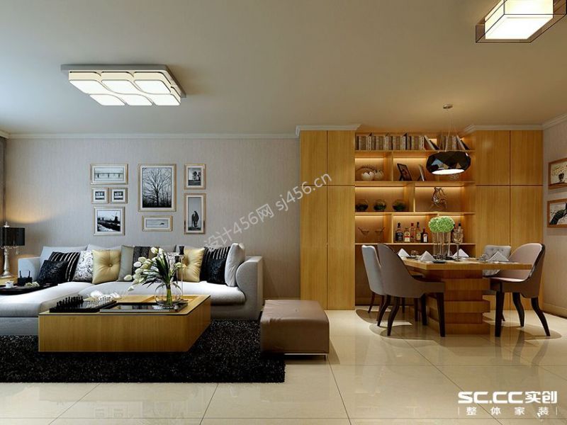 威尔夏大道现代奢华三居120㎡装修案例风效果图