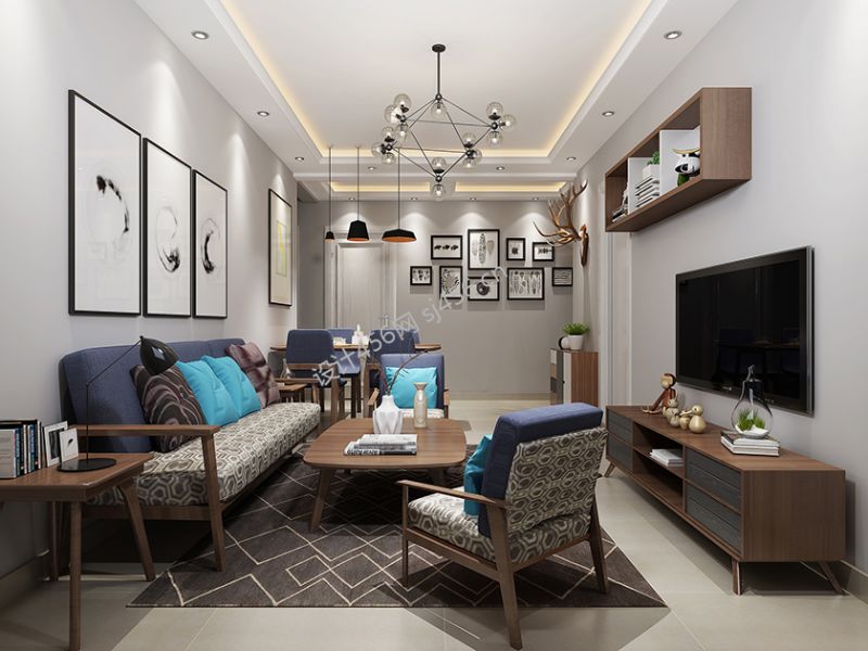 北欧风格95平米二居室客厅吊顶装修设计图片
