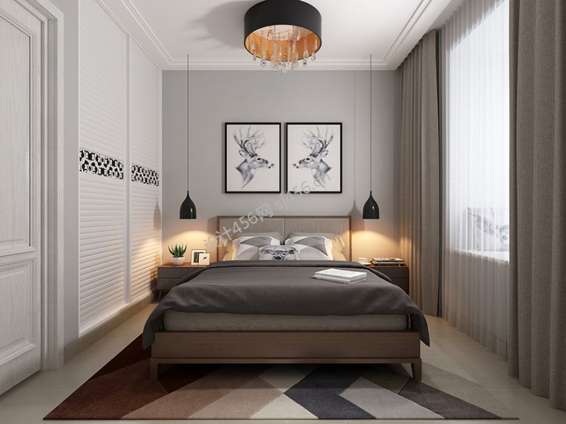 北欧风格95平米二居室卧室墙面颜色装修设计图片