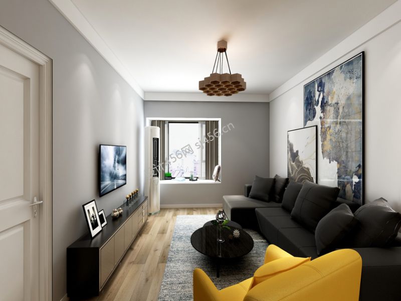 富力惠兰美居北欧风格95平米二居室装修案例风效果图