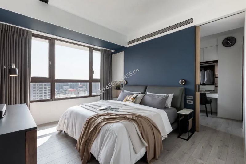现代风格118平三居室卧室背景墙装修设计图