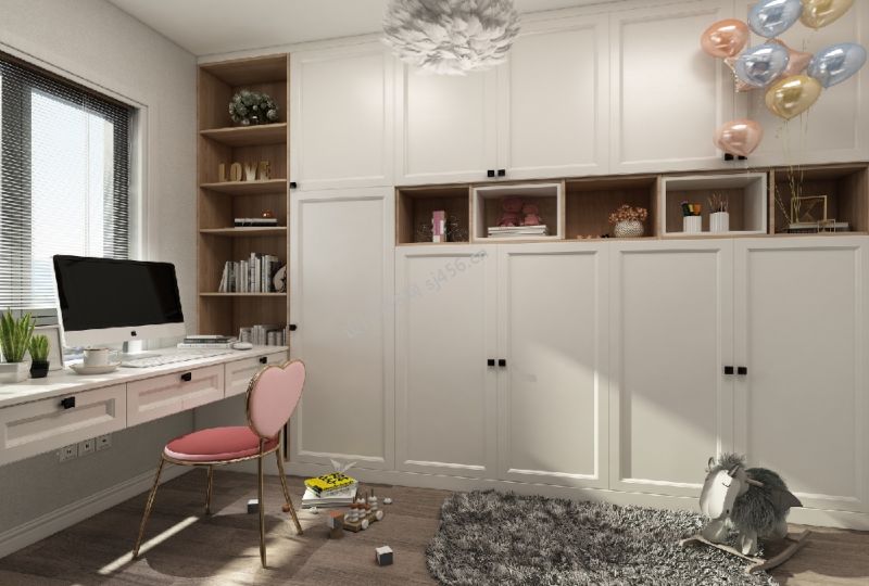 轻奢风三居室130平书房装修实景图