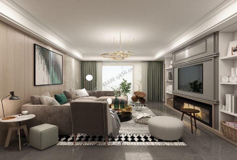 龙山新新小镇轻奢风三居室130平米装修案例风效果图