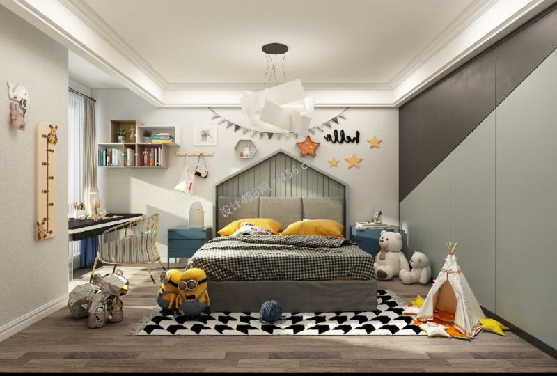 珠江壹千栋美式风格三居室106平米装修案例风效果图