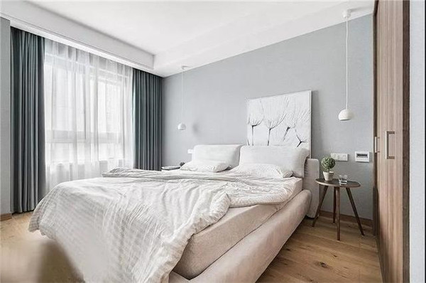 卧室的风格与整个家居风格保持一致,依旧是熟悉的实木色地板,配上实木色的衣柜,营造了非常舒适的睡眠环境。
