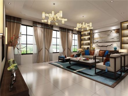 中海九号公馆新中式风格670平米别墅装修案例风效果图