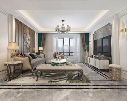 宝盛里轻奢风格108平米三居室装修案例风效果图