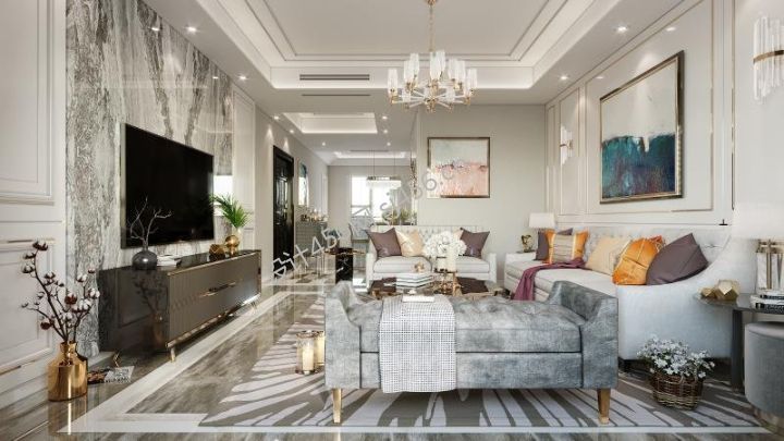 宝盛里轻奢风格108平米三居室装修案例风效果图