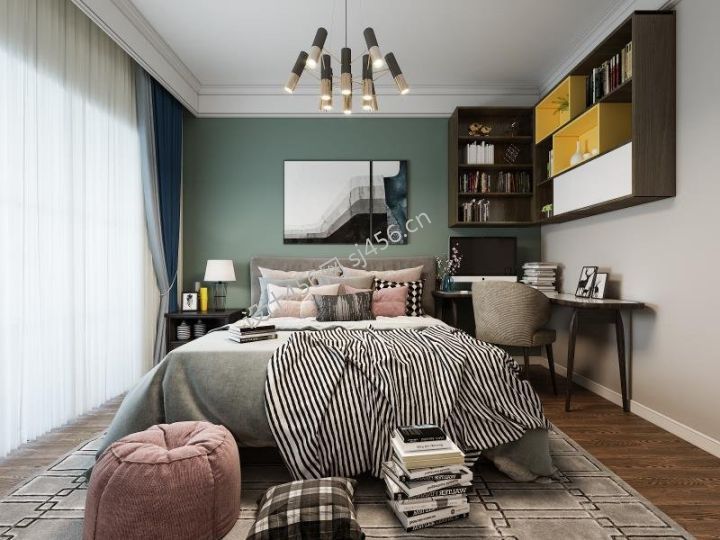 简欧风格四居室卧室书桌装修效果图