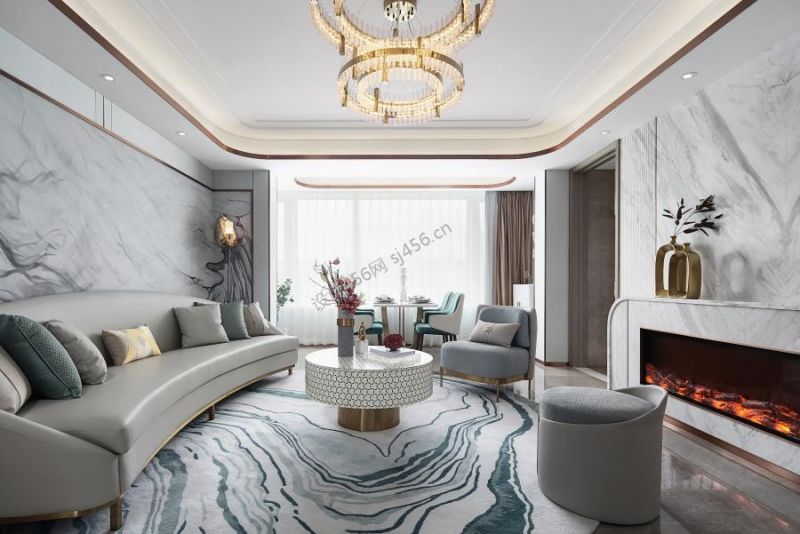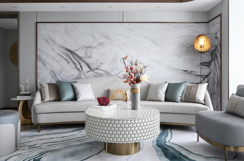 90平米轻奢二居客厅沙发墙装修效果图