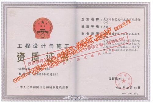 工程设计与施工资质证书