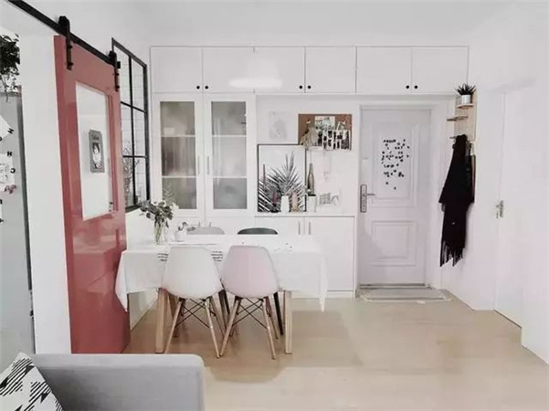 ▲直接用玄关柜做隔断,化解大门正对卫生间风水
