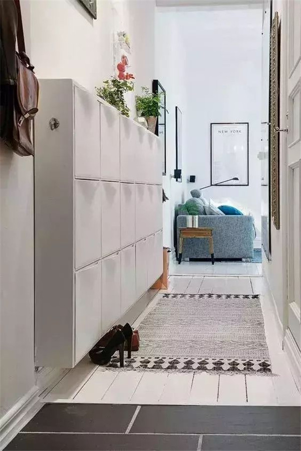 如果以上两项都不能实现,就只能在距离大门一段距离的空间摆放玄关柜子收纳了。